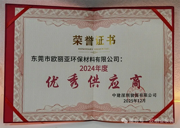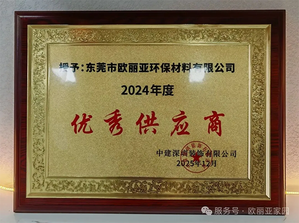 喜訊!歐麗亞獲評中建深裝「優秀供應商」獎
